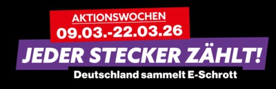 Nach über 200 teilnehmenden Kommunen, Unternehmen und Organisationen im Jahr 2025 geht die bundesweite E-Schrott-Sammelaktion in eine neue Runde. Die bundesweiten Aktionswochen „Jeder Stecker zählt! Deutschland sammelt E-Schrott“ haben 2025 eindrucksvoll gezeigt, wie groß das Engagement für die richtige Entsorgung von Elektro-Altgeräten ist. Zahlreiche Kommunen, Unternehmen und Organisationen beteiligten sich mit Aktionen vor Ort und sorgten bundesweit für eine hohe Sichtbarkeit des Themas.