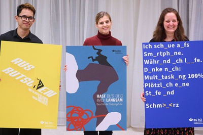 Die Siegerinnen und Sieger des dritten Arbeitsschutzplakatwettbewerbs der Berufsgenossenschaft Rohstoffe und chemische Industrie (BG RCI) stehen fest: Aleksandra Borzunova, Channa Chheng und Nina Maria Drangmeister wurden für ihre Plakatserien zum Thema Stolpern, Rutschen, Stürzen (SRS) ausgezeichnet. Der Wettbewerb ist mit insgesamt 6000 Euro dotiert.