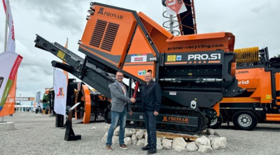 Am Pronar Stand als Messeneuheit gezeigt wurde der Pronar PRO.S1, ein neu konstruierter, kompakter Zerkleinerer. Weiterhin vertreten waren drei langsam laufende und ein schnell laufender Zerkleinerer, zwei Trommelsiebanlagen und ein raupenmobiles Haldenförderband. Eine Sonderstellung nahm die Trommelsiebanlage Pronar MPB 20.55 hybrid ein, die, erstmals mit dieselelektrischem Hybridantrieb präsentiert wurde. Hybridantriebe sind noch längst nicht für alle Maschinen in der Aufbereitung verfügbar. Die MPB 20.55 hybrid kann bei ausgeschaltetem Diesel betrieben werden, ansonsten kommt das leistungsstarke 80 kVA-Dieselaggregat zum Einsatz. Flexibilität und Vielfalt in Bezug auf die Antriebsalternativen sind kennzeichnend für alle Maschinen aus dem Pronar Produktprogramm für die Aufbereitung.