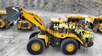 Nach der symbolischen Übergabe des WA700-8E0 an den Kunden Heinrich Hecker KG auf der Bauma 2025 fand nun die Maschinenübergabe am Einsatzort statt. Teil der Übergabe war nicht nur der WA700, sondern auch vier Muldenkipper HD605-8E0, die in einem Steinbruch eingesetzt werden.